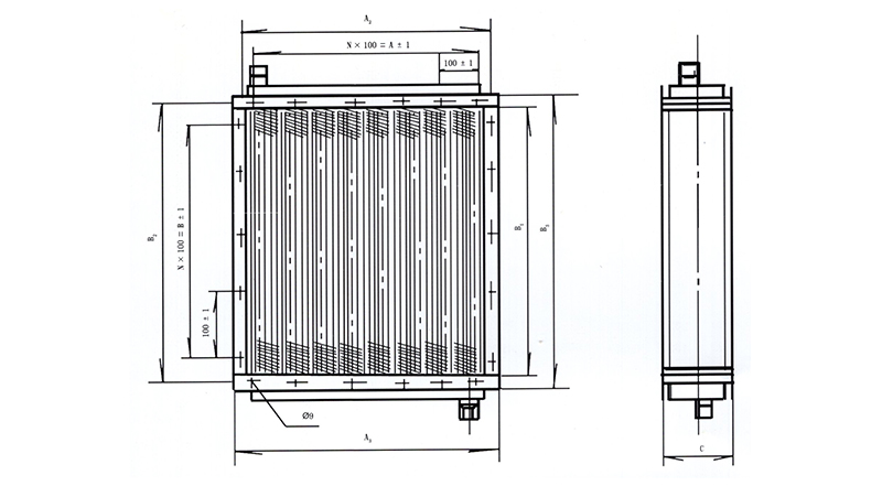GLⅡ型散熱器為鋼制雙回路(二排)或多回路(四排)的空氣熱交換器,翅片管用φ18×2mm無縫鋼管繞制上10×0.3mm皺折鋼帶而成,呈螺旋狀,其片距為3.2mm,可有各種表面管數(shù),管長,排數(shù)組成多種規(guī)格。進(jìn)出水管位于同一側(cè),工作熱源為蒸汽或高溫水,冷源為低溫水或鹽水,可用作空氣加熱器或空氣冷卻器,是一種經(jīng)濟(jì)耐用通用性強(qiáng)的散熱器。